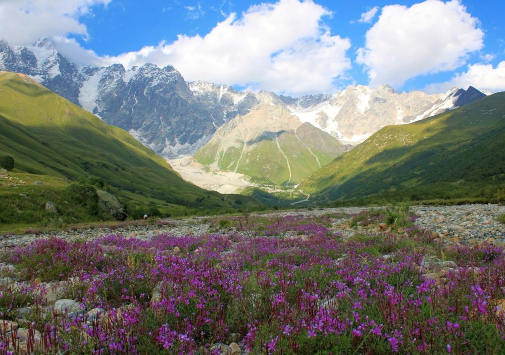 Закусваме и тръгваме нагоре по живописната долина на р. Адиши в посока към с. Калде. След около час идва време да пресечем мощните води на реката, което ще го направим със стил – върху гърба на кон. Продължаваме изкачването си към високия превал Чхундери (2655 м.н.в.), радвайки се на гледките към ледника Адиши и околните кавказки върхове. Изпълнени с наслада от пленителния пейзаж гпрудно откъсваме очи, за се спуснем по долината на р. Калдечала към селата Калде и Ипрали. Настаняваме се в уютна къща, вечеряме и се отдаваме на заслужена почивка след този отново предизвикателен, но и не по-малко впечатляващ с пленителните си гледки ден.
